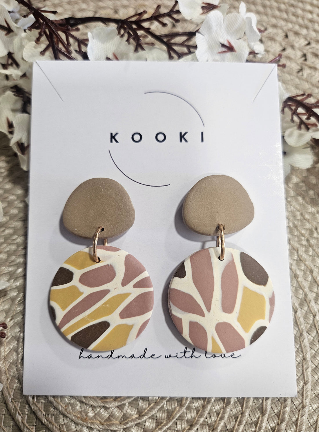 Yellow Brown Mosaic Round earrings