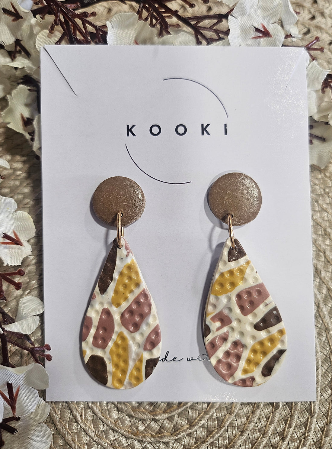 Yellow Brown textured dangle earrings
