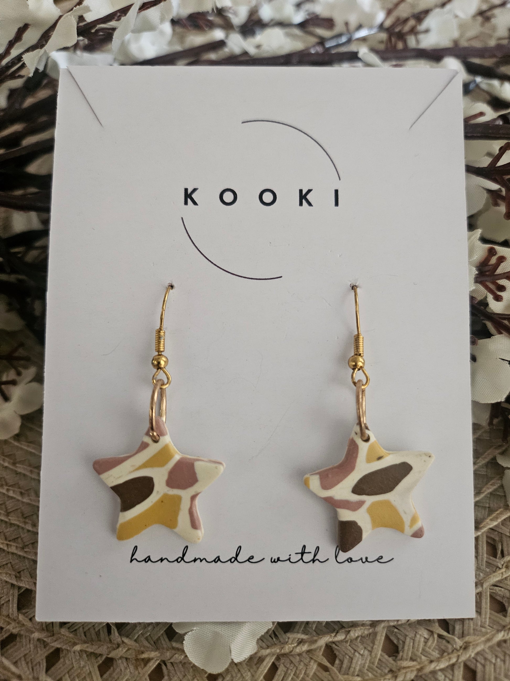 These elegant mosaic star earrings feature a simple mosaic design with delicate dangles, adding a subtle touch to any outfit. Perfect for everyday wear or special occasions.
