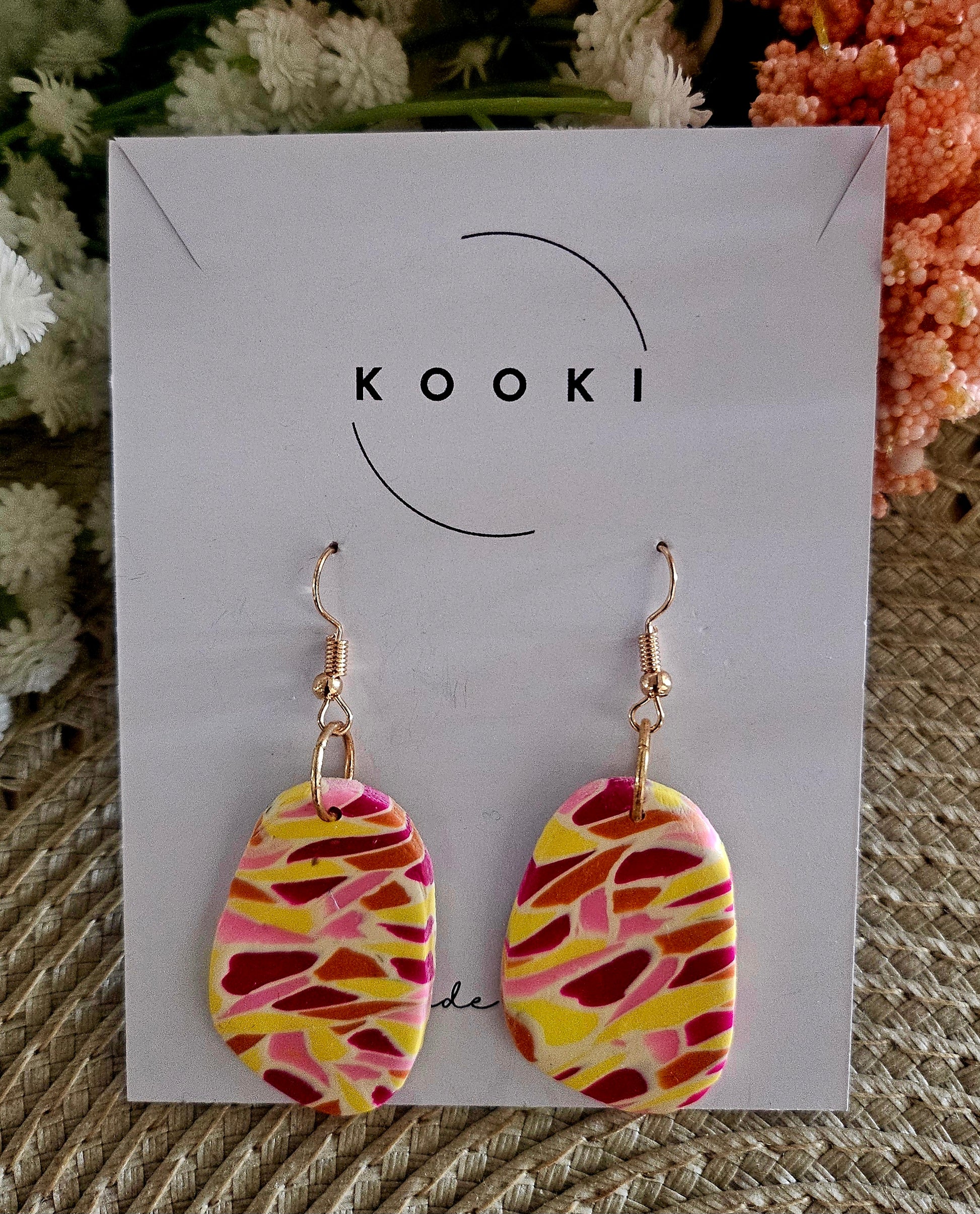 These handmade yellow textured dangle earrings offer a statement piece with a unique design. Their refined texture enhances any outfit, adding a touch of artistic sophistication.