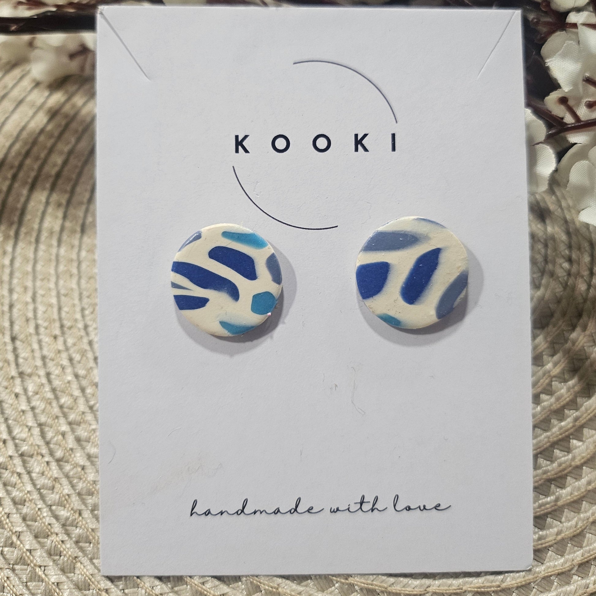 For those who prefer light and small earrings, this is the best choice. This pair consists of two small, round studs where the subtle blue collage pattern stands out beautifully. These studs are suitable for any type of outfit and will give you an elegant look.